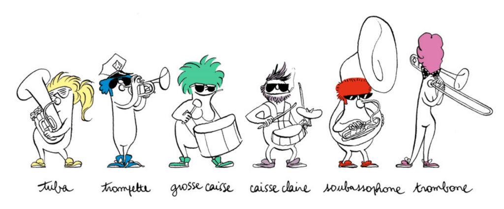 O artista Aude Picault fez uma animação engraçadinha que permite a ação do usuário para ouvir o som dos instrumentos. É só acessar o site clicando aqui e clicar em cada figura para ouvir o som do instrumento.